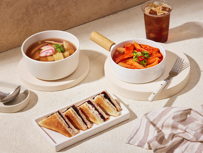 다양한 음료와 달콤한 디저트, 한국인이 사랑하는 간식 떡볶이, 간편하게 즐길 수 있는 토스트까지!