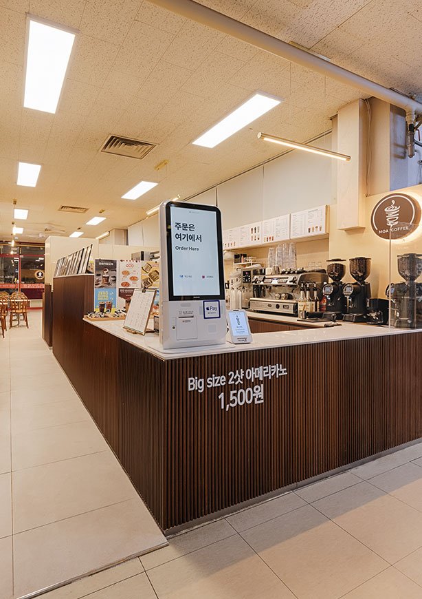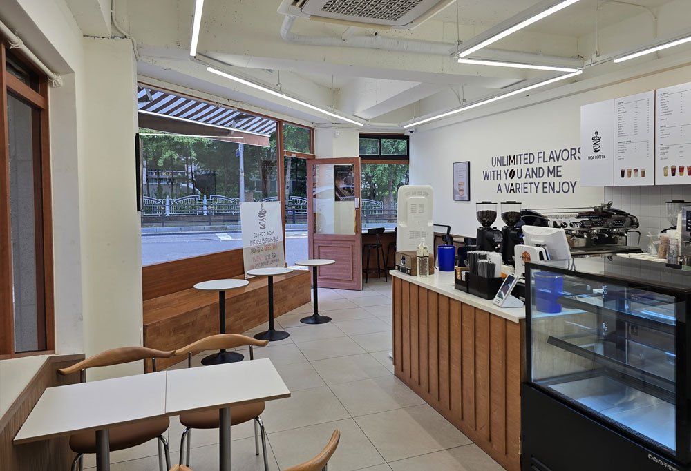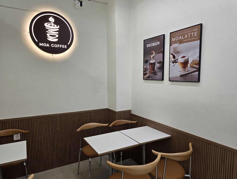 모아커피의 인테리어는 고객과 점주 모두를 만족시키는 실용성과 감각적인 디자인을 결합한 것이 특징입니다.